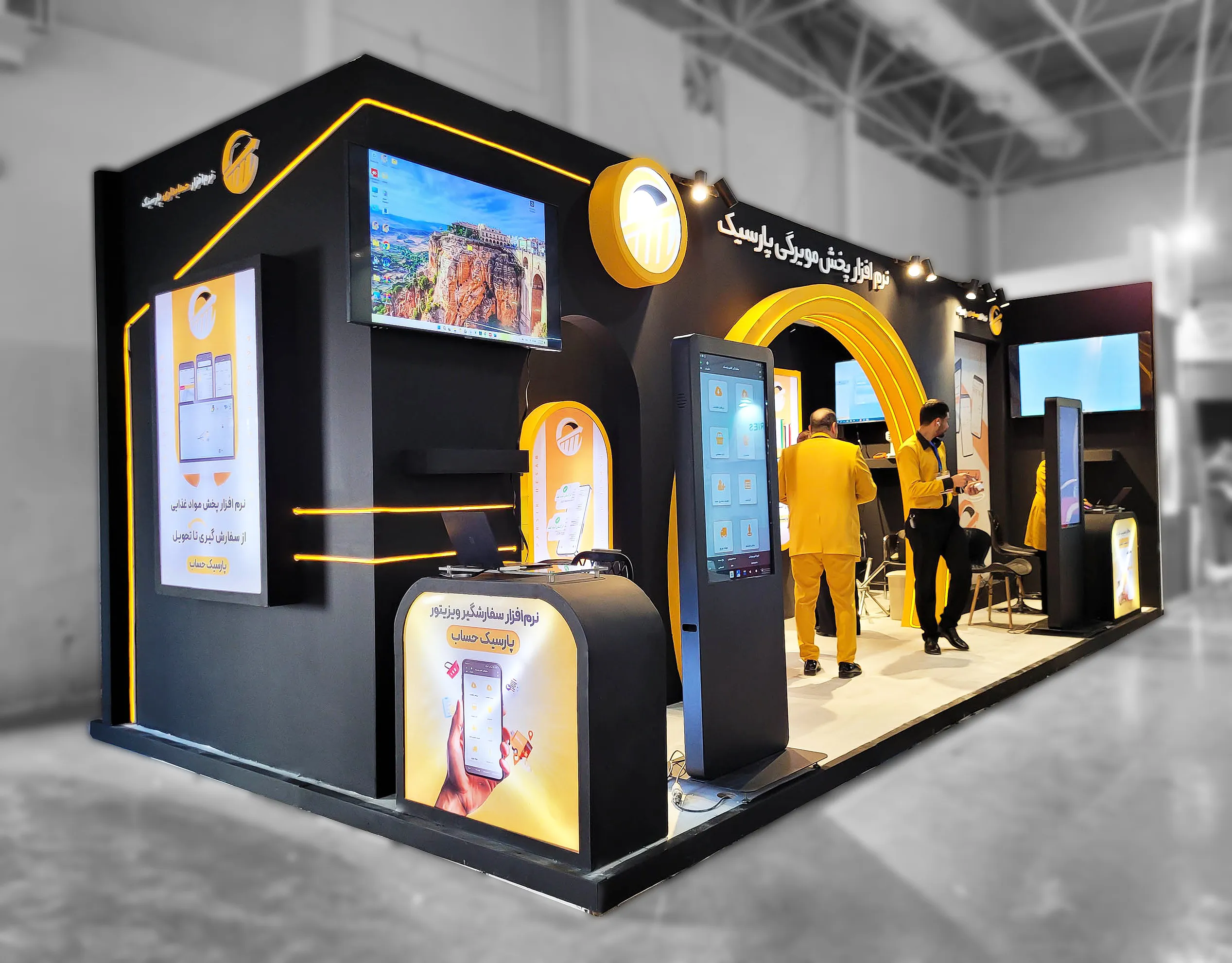 هدف از اجرای غرفه اختصاصی شرکت نرمافزاری پارسیک، ارائه یک تصویر حرفهای از نقش فناوری در صنعت غذا و کشاورزی بود. شرکت پارسیک با ارائه نرمافزارهای مدیریت زنجیره تامین، ردیابی تولیدات و … در دیجیتالیکردن صنایع غذایی نقش موثری ایفا میکند. ازاینرو لازم بود در طراحی غرفه فضایی مدرن، ساختارمند و همراستا با مفهوم فناوری، نظم و نوآوری وجود داشته باشد.