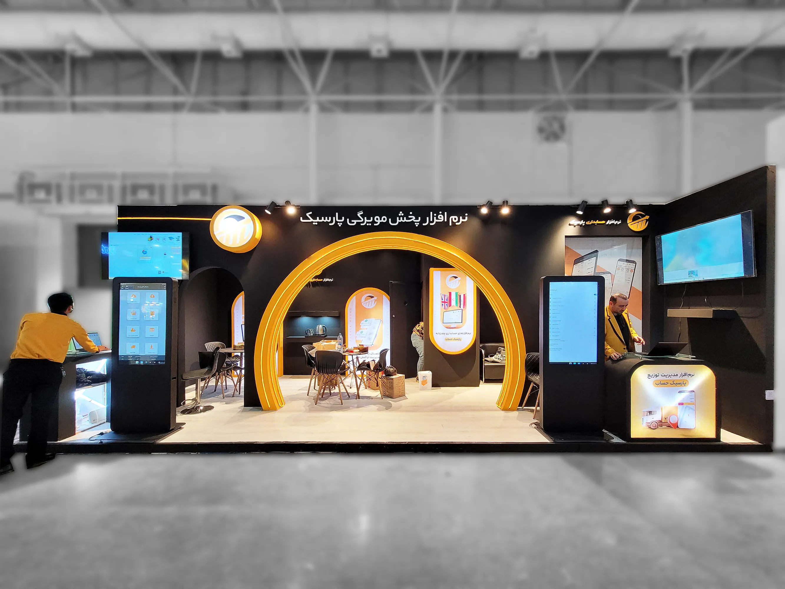 کارشناسان حرفهای کبیرسازان سعی کردند در طراحی این غرفه از عناصر مدرن مانند خطوط هندسی، نورپردازی خطی، سازههای شفاف و کفپوشهای باکیفیت استفاده کنند تا حس دیجیتال، هوشمندی و فناوری در ذهن بازدیدکننده نقش ببندد. در غرفه فضایی برای دمو زنده نرمافزارها، میز مذاکره فنی، نمایشگرهای لمسی و تابلوهای معرفی پروژهها در نظر گرفته شد تا بازدیدکنندگان با عملکرد سیستمهای پارسیک آشنا شوند.